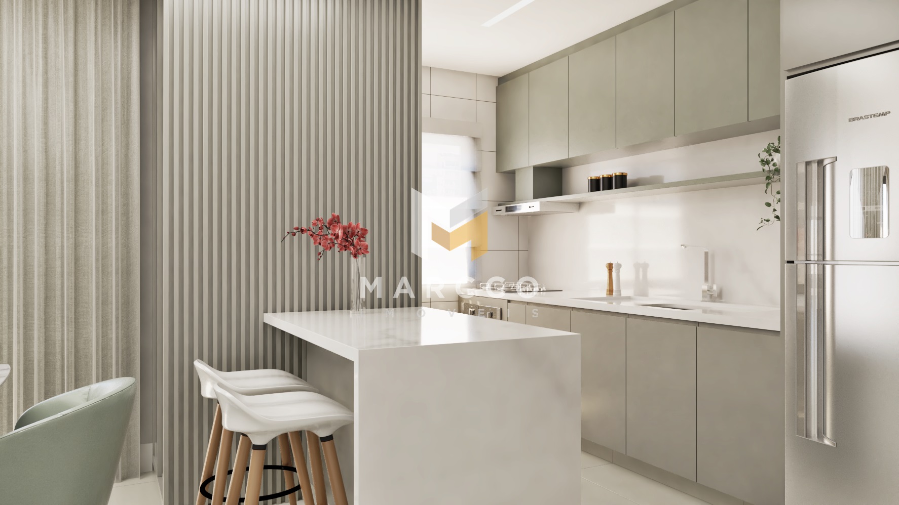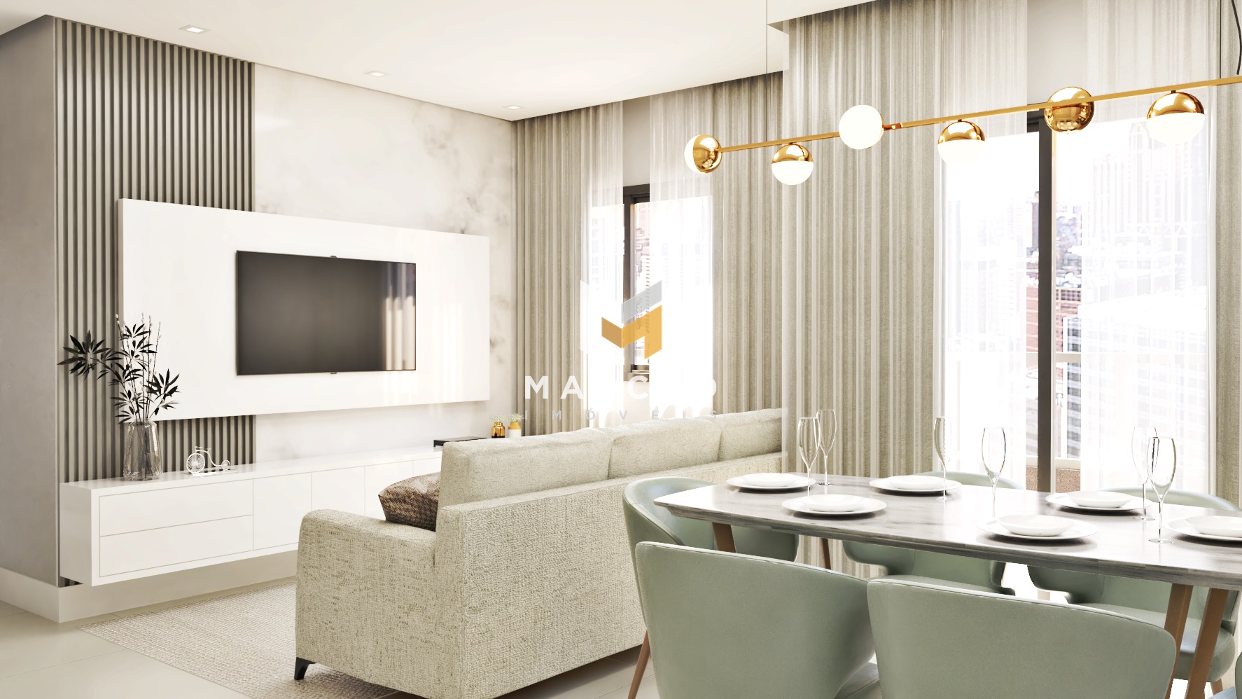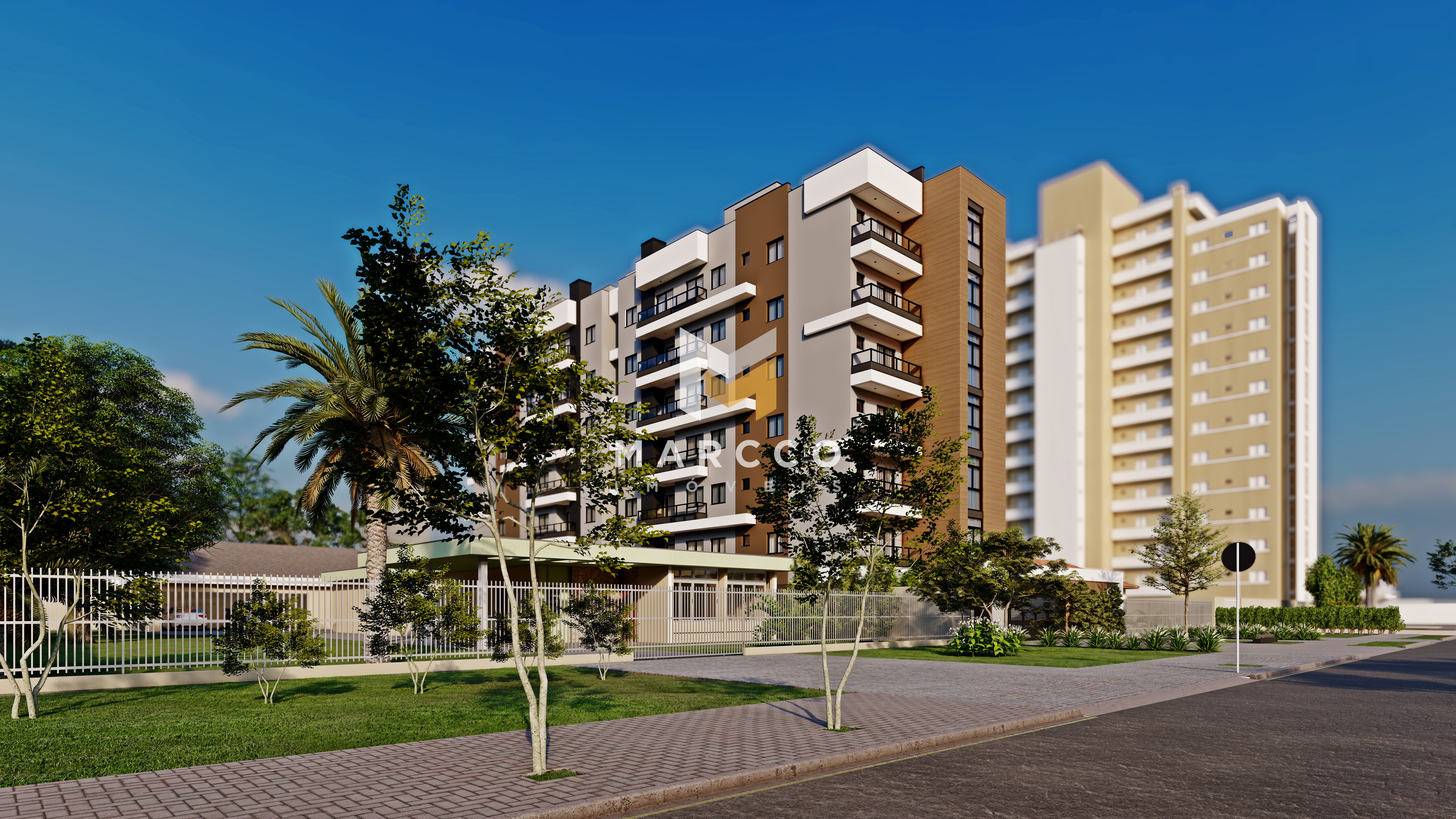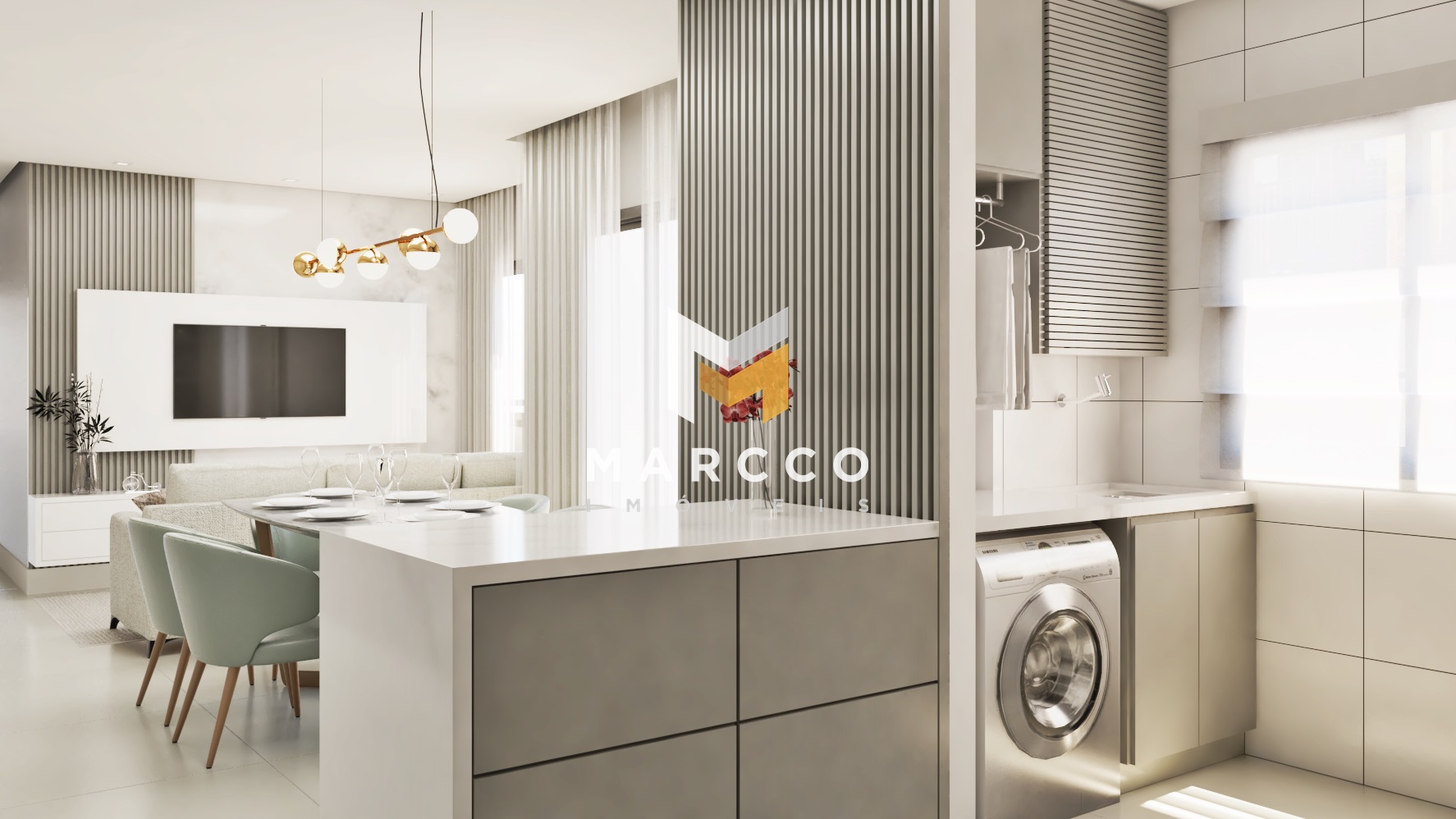 Apartamentos a partir de 74 m² de área privativa e 104 m² total, com 03 quartos sendo uma suíte, um banheiro social, sala e cozinha integrada, lavanderia, sacada com churrasqueira e uma vaga de garagem.