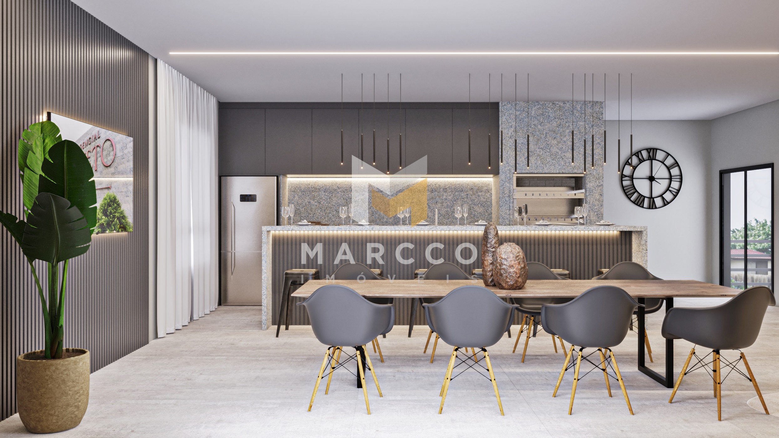 O Residencial dispõe de Fire Place, quadra poliesportiva, espaço gourmet, salão de festas, Hornest Market, delivery, academia, Lounge Externo e Playground.