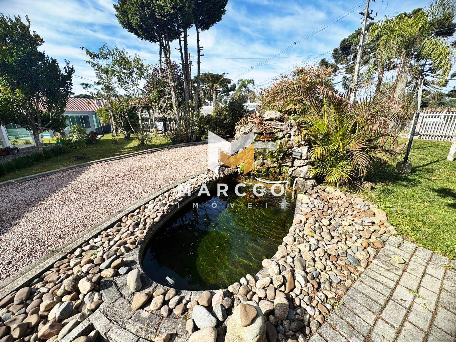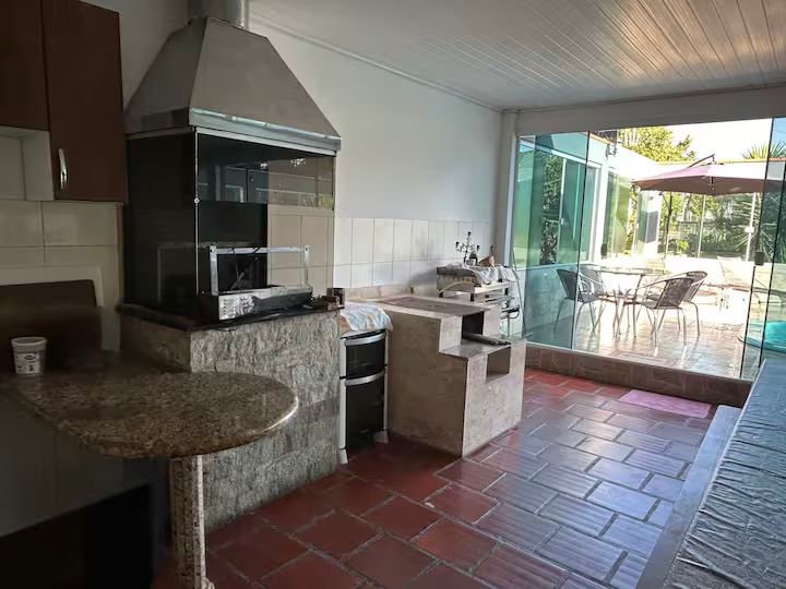 Área de lazer com piscina aquecida, churrasqueira, cozinha completa, forno e fogão a lenha, lavabo, poço oferendo independência de abastecimento de água, lago com peixes, amplo jardim e quiosque.