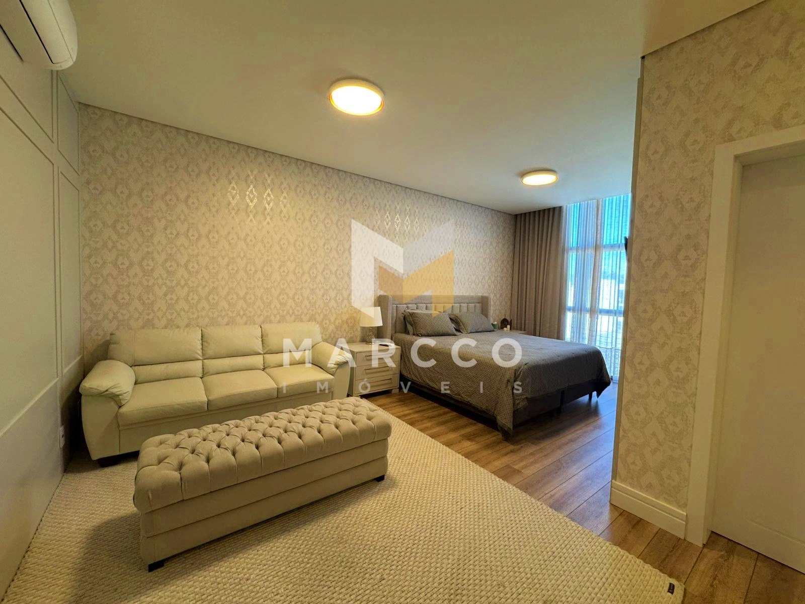 Piso Superior: Três suítes grandes, todas com sacada e veneziana integradas automatizada, ar-condicionado e home office para trabalho remoto.